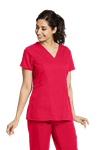 Filipina 41452 con funcional escote tipo V, corte princesa al frente y atrás. Los detalles de pretina a los lados le ofrecen un look estilizado. Cuenta con tres bolsillos (Dos al frente y uno para el móvil). Las aberturas a los lados facilitan el movimiento. Pantalón 4276 con cintura y jareta tejida tipo yoga, dos bolsos laterales y dos traseros, corte recto y aberturas laterales. Tela: 77 % Poliéster, 23% Rayón