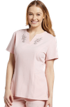 Filipina para Dama, cuello en V, acentuado por un bordado floral, el cual le da un toque muy femenino. Cuenta con 2 bolsillos tipo parche. Pantalón de corte recto y moderno, cuenta con jareta para un mejor ajuste y 2 bolsillos. Tela: 62% Polyester 32% Rayón 4% Spandex